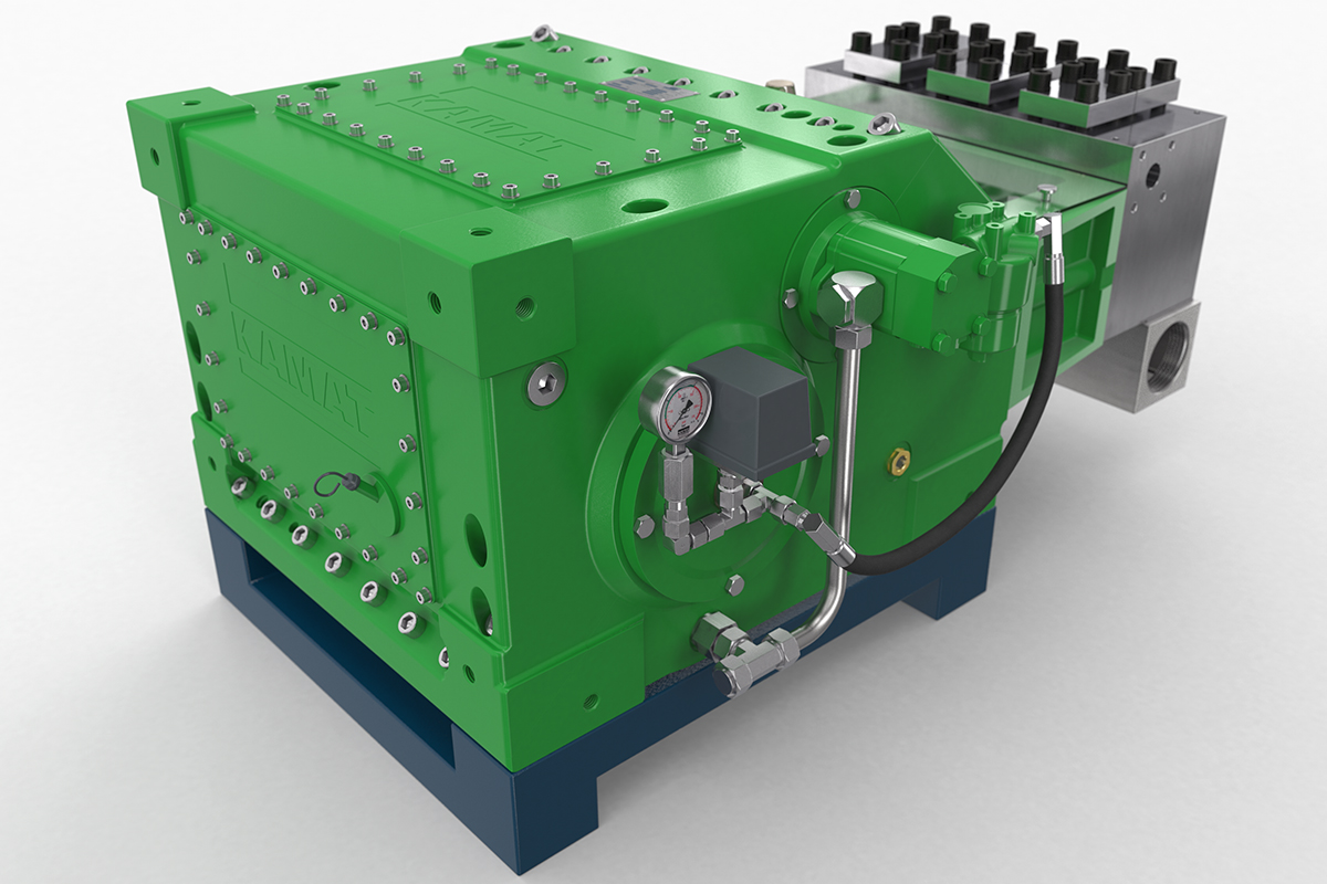 K35000高壓泵的驅動功率為350 kW,非常適合噴射和液壓應用。 例如,它經常與大型移動式噴射系統一起使用,已在化工行業服務多年,并在采礦行業滿足流量從400至600 l升/ 分鐘的需求。 在這種情況下,帶有強制潤滑齒輪和油冷卻器的K35000可以滿足24/7全天候運行的要求。 K35000高壓泵采用經典的KAMAT模塊化組件系統構建,因此可以靈活地適應工作壓力和介質等要求。 因此,它也經常用于過程處理領域。